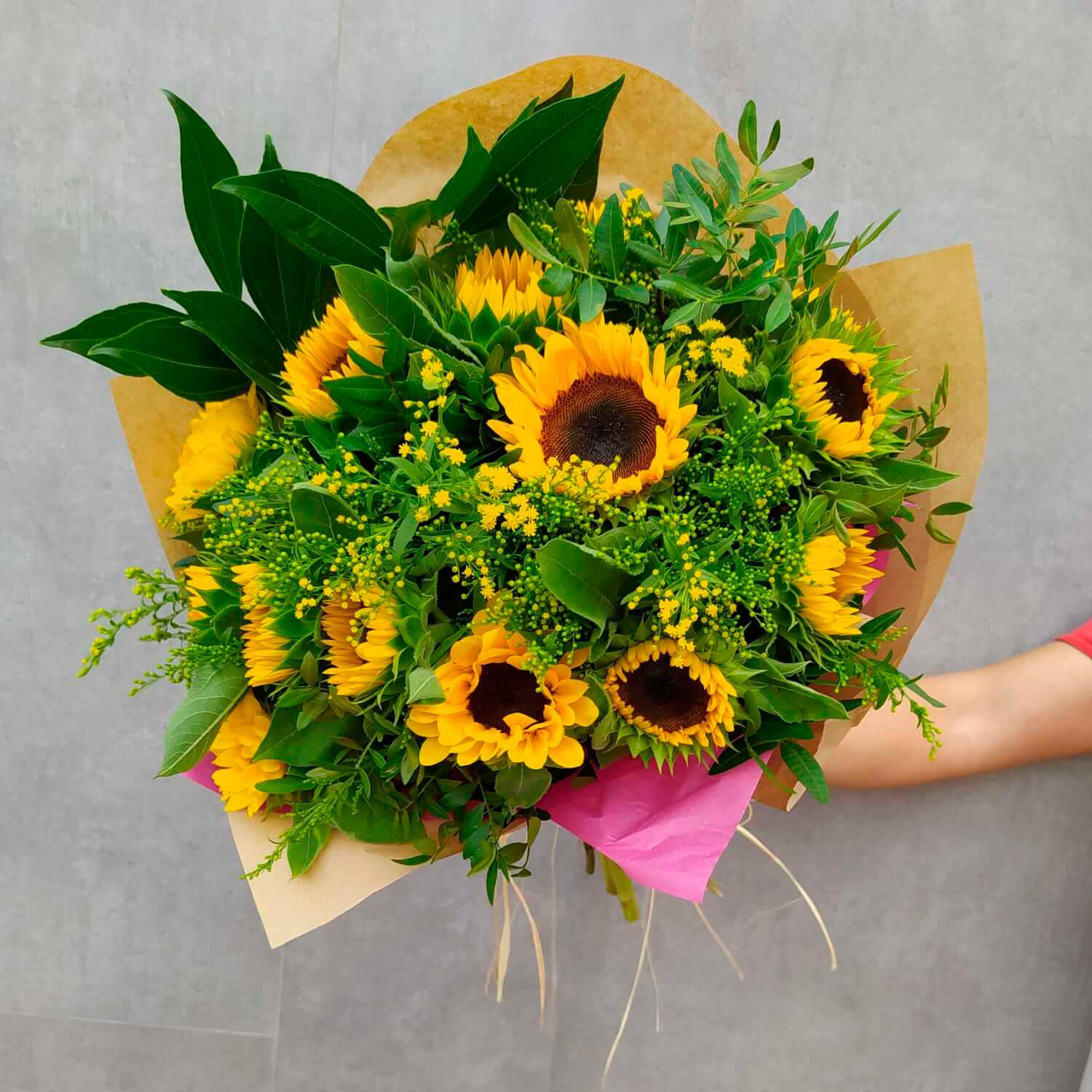 Ramo de girasoles y relleno de solidago