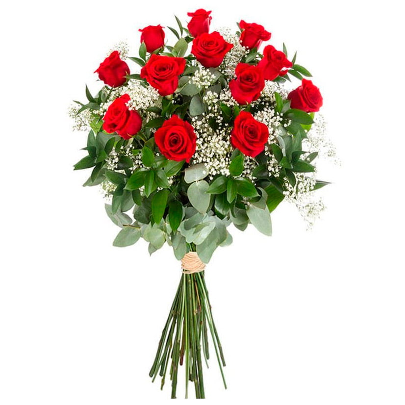 Ramo de Rosas de tallo largo con relleno de panicuta y eucalipto